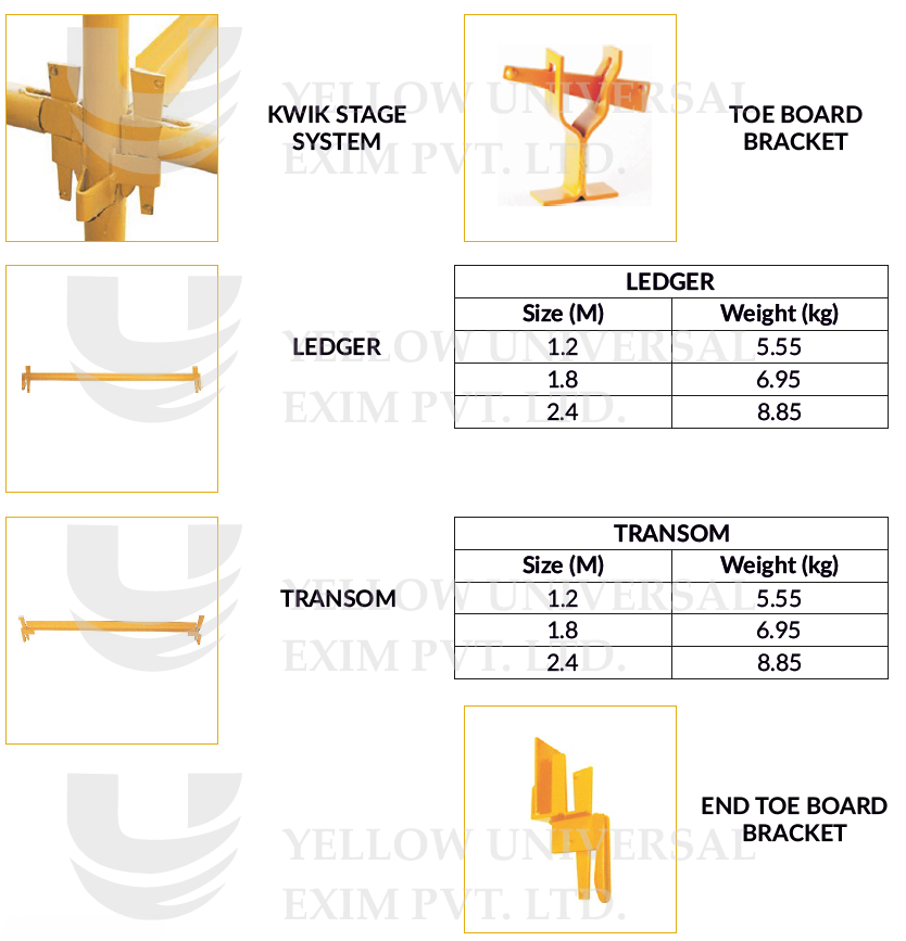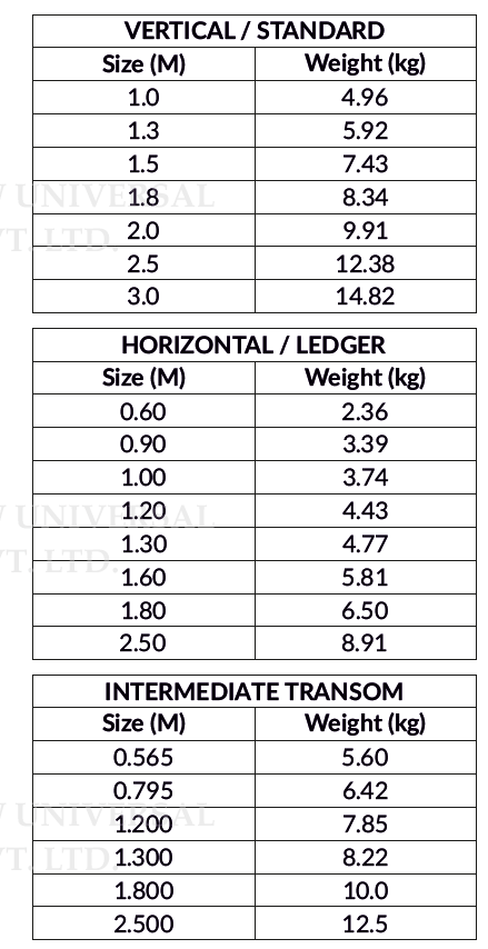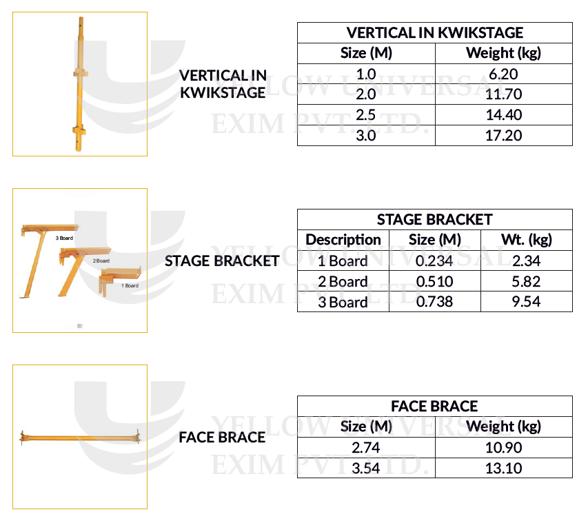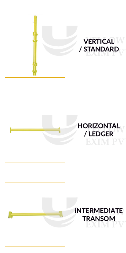 Description: These are the vertical tubes that form the main structure of the scaffolding. They come with cup joints at regular intervals.